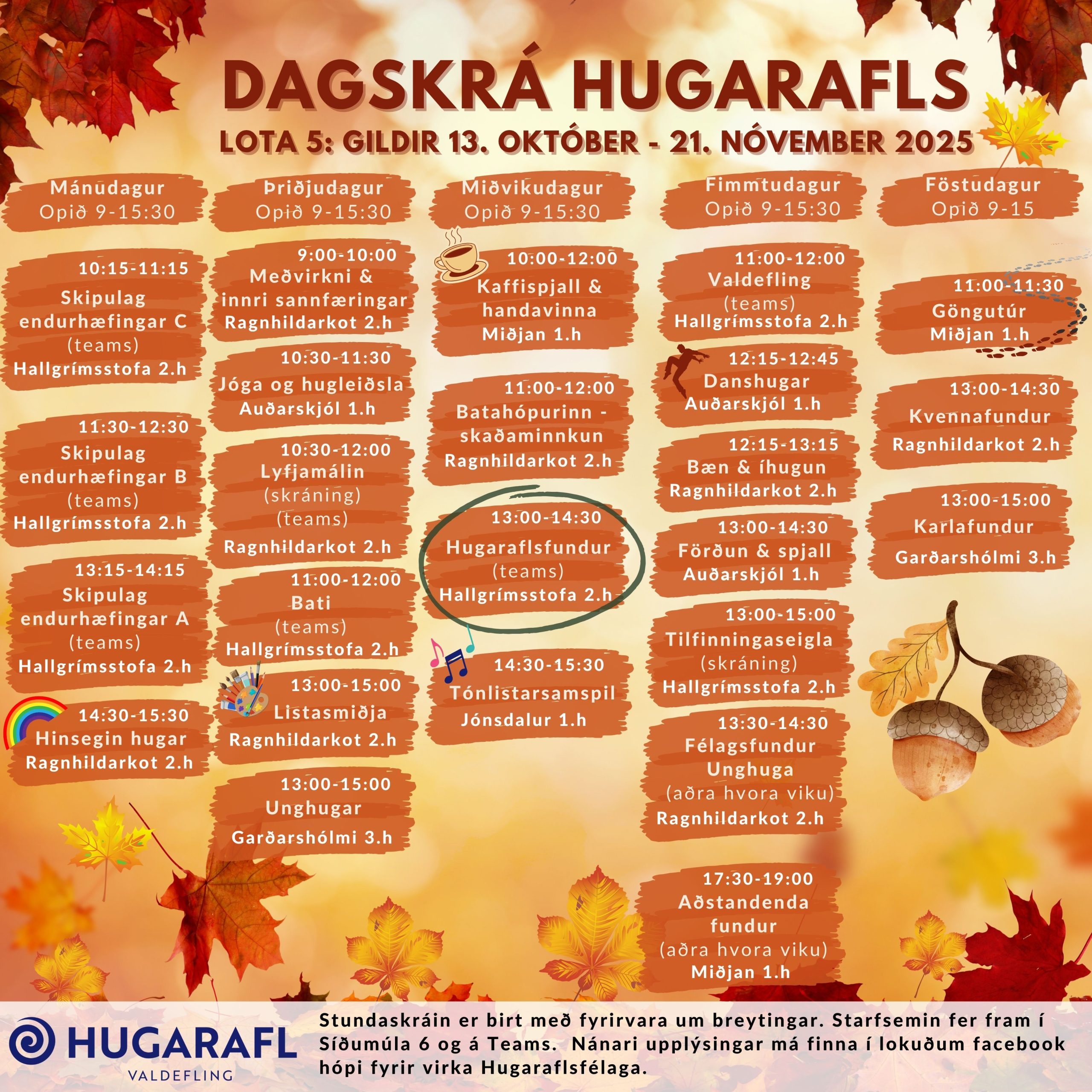 Góðan dag. Hér kemur dagskrá fyrir lotu 5, sem gildir 13. október – 21. nóvember 2025.